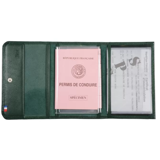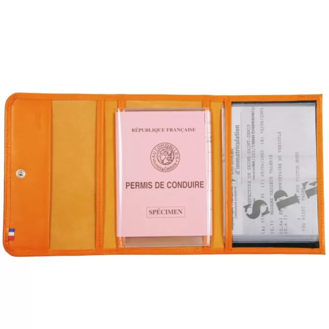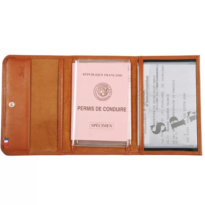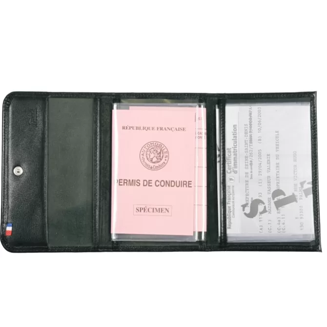 Découvrez votre produit Porte papier en cuir parfait pour mettre dans votre boîte à gant En cuir vachette lisse pleine fleur, son touché est agréable, il vieillit bien dans le temps.Ce porte papier portefeuille dispose d’un empalcement protection plastique pour le permis de conduire, la carte grise et papier assurance.Très complet ce porte papier à aussi la fonction portefeuille avec 5 encoches pour les cartes de crédit et son porte monnaie zip.La touche finale figure avec le drapeau Français.